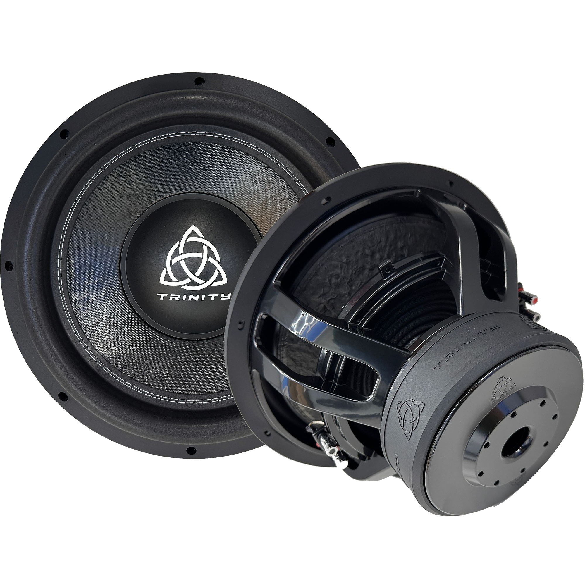 The Trinity B Series 15'' Subwoofer 1,500 Watts RMS features a robust cast basket and maintains Trinity Audio Solutions' signature all-black sleek design, ensuring both durability and aesthetic appeal. Equipped with a 3" high-temperature dual voice coil, this subwoofer handles 1,500 Watts RMS, delivering deep, impactful bass while maintaining clarity and precision.