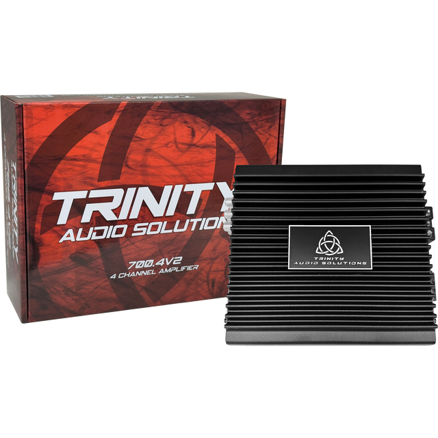 Engineered from the ground up, the Trinity Audio Solutions 700.4v2 4-Channel Amplifier undergoes rigorous testing to ensure exceptional quality, reliability, and performance. Trinity's dedication to quality, affordability, and a compact footprint drives the design philosophy behind the Trinity Audio Solutions 700.4v2 4-Channel Amplifier.