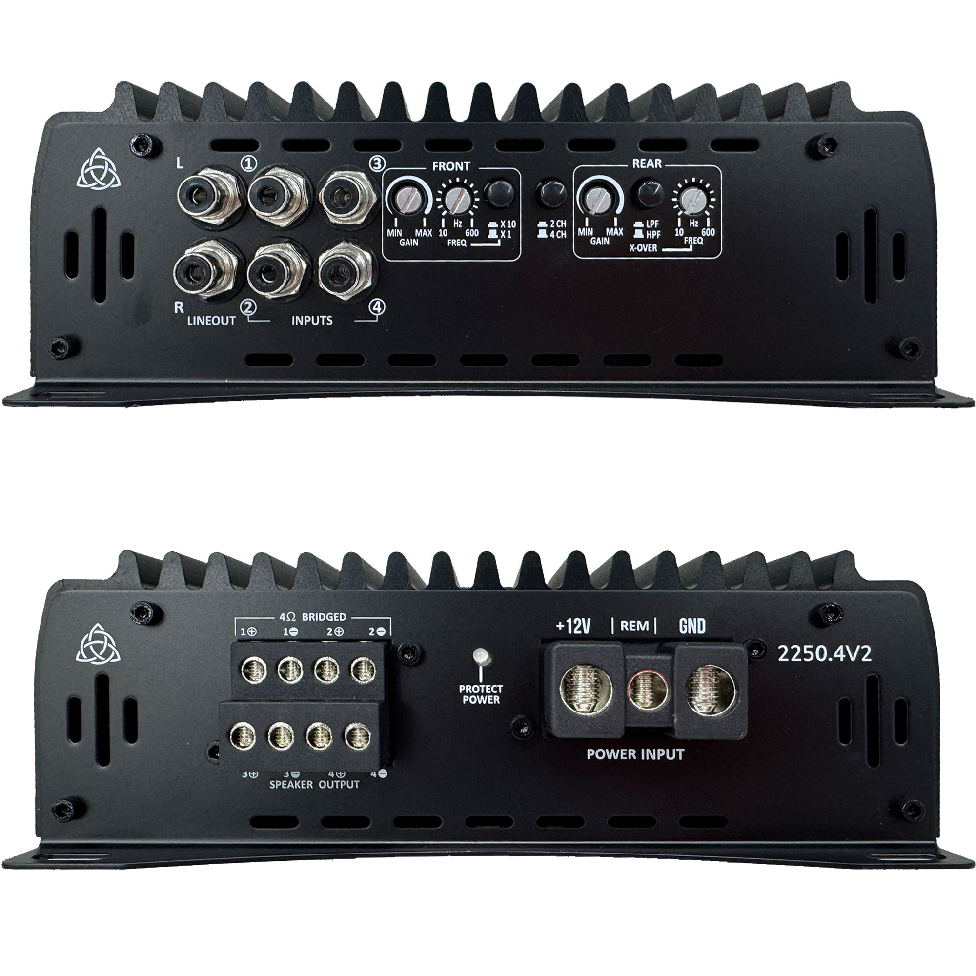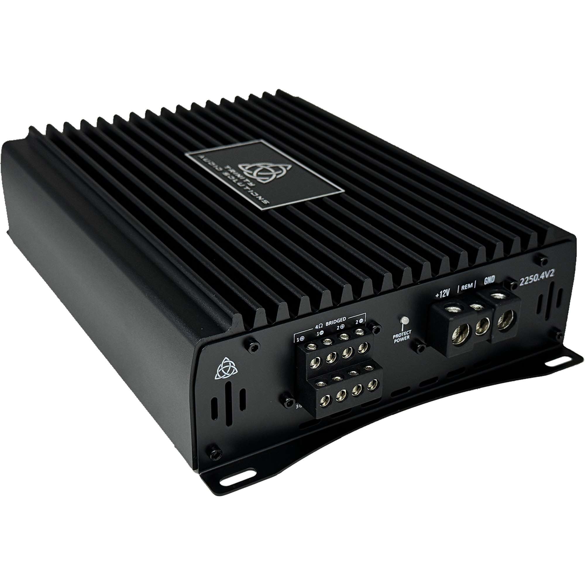 Engineered from the ground up, the Trinity Audio Solutions 2250.4v2 4-Channel Amplifier undergoes rigorous testing to ensure exceptional quality, reliability, and performance. Trinity's dedication to quality, affordability, and a compact footprint drives the design philosophy behind the Trinity Audio Solutions 2250.4v2 4-Channel Amplifier.